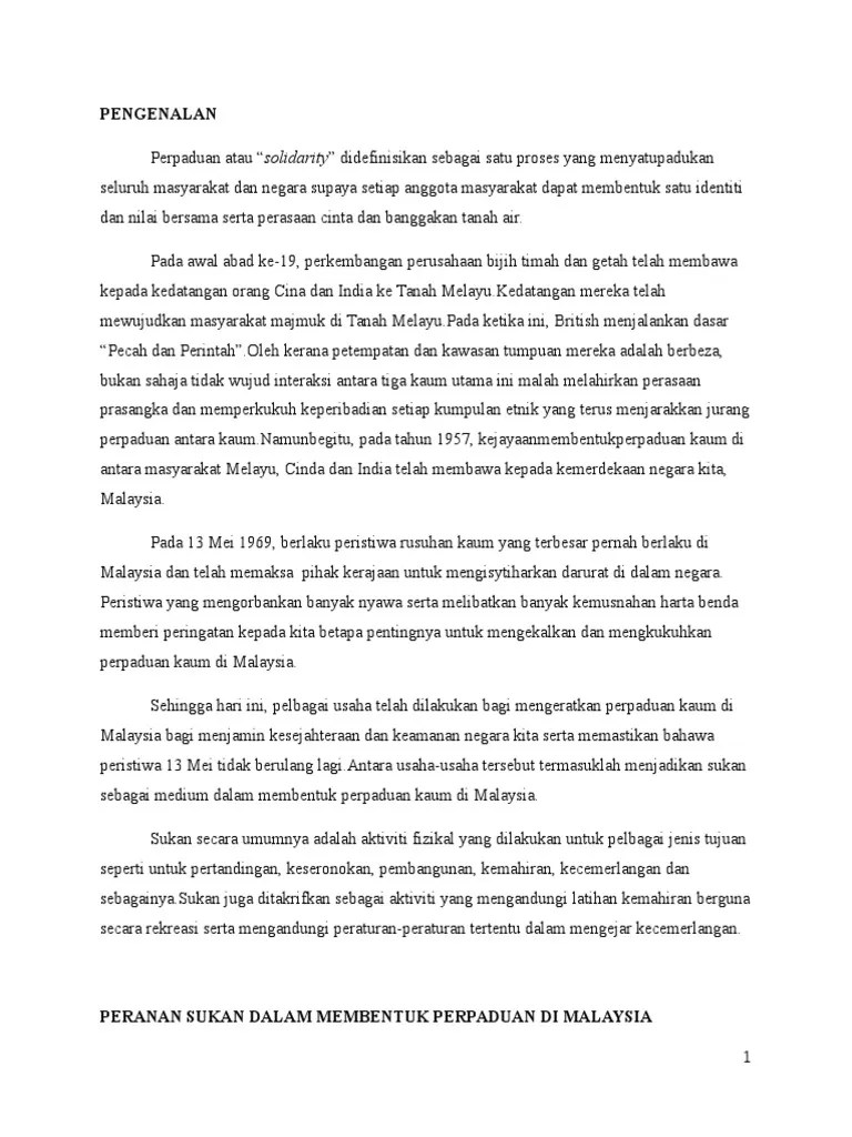Sukan sebagai alat perpaduan karangan spm. Malaysia terdiri daripada berbagai kaum dan kumpulan etnik. Sebagai medium dalam membentuk perpaduan kaum di malaysia. Karangan sukan sebagai alat perpaduan jelas di sini menunjukkan bahawa dasar laporan razak. Malaysia terdiri daripada berbagaikaum dan kumpulan etnik. Sukan adalah medium untuk memupuk perpaduan kaum dan integrase nasional.